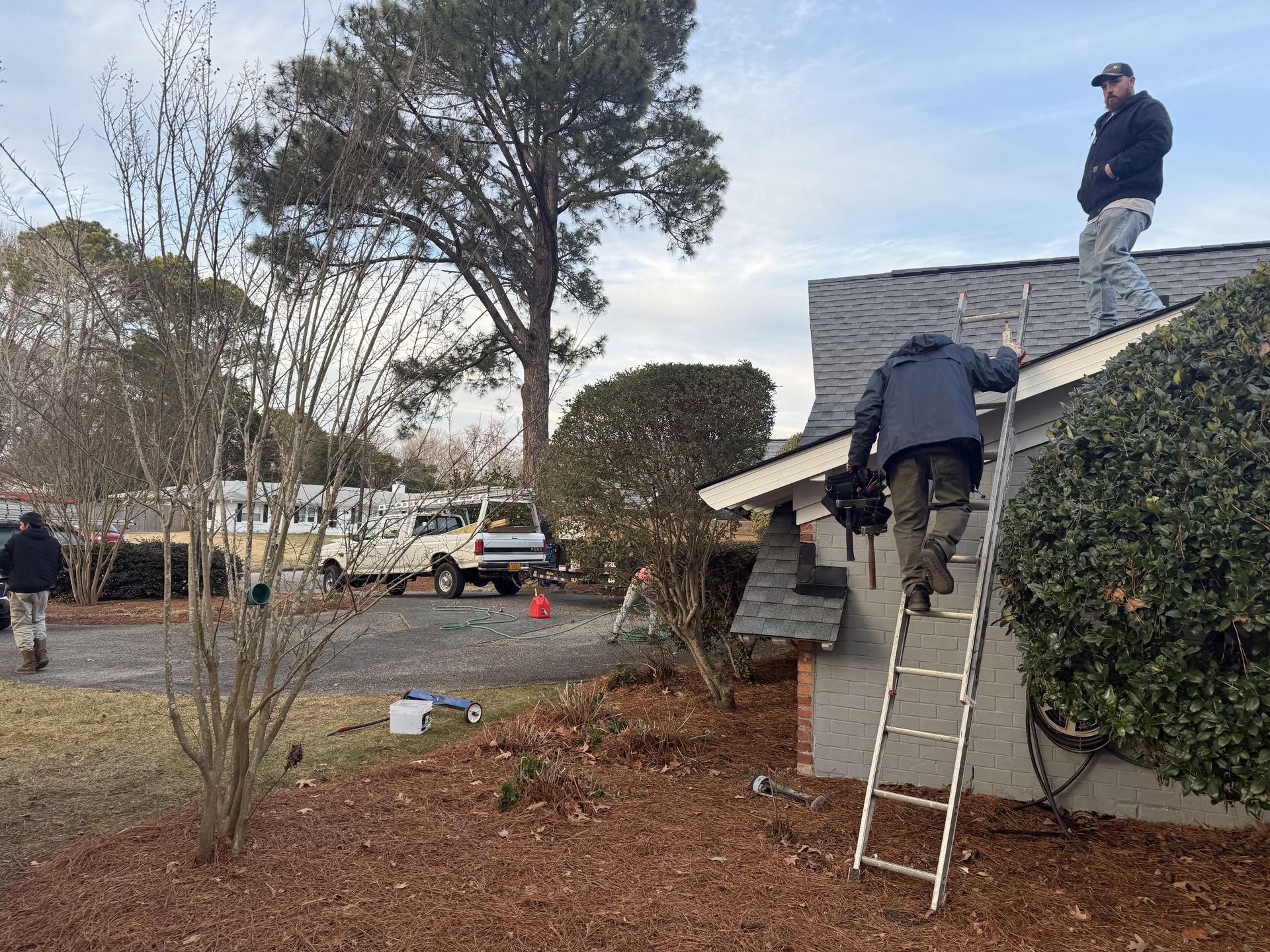 Pricing depends on the cause of the issue, roof type, roof height, and access. Smaller repairs are often in the $200–$800 range, while more involved repairs may run $800–$2,500. We start with a free roof repair inspection and explain options clearly before any work begins.